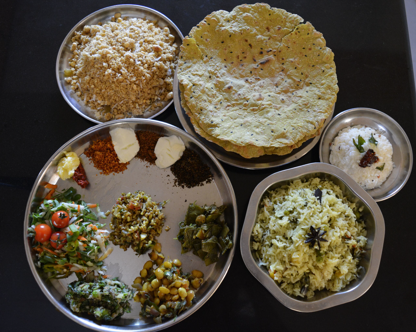 So many Sankranti foods return to the same ingredients: til (sesame) and gud/gur (jaggery)—rolled into laddoos, pressed into chikki, folded into winter snacks. They’re warming, sturdy, nourishing—exactly the kind of food that travels well between houses, passed from palm to palm.